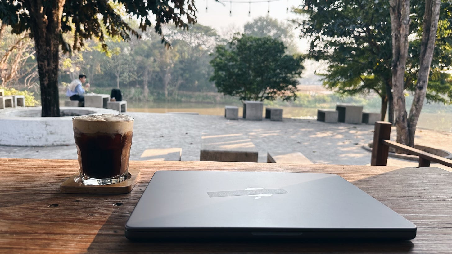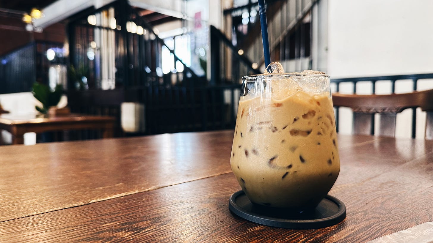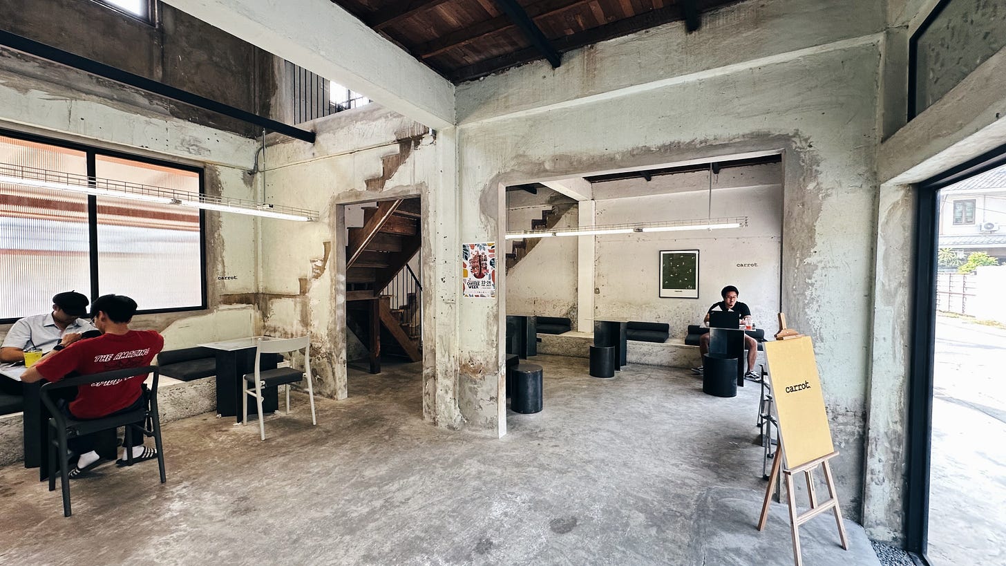 也沒說錯,旅遊就是花錢去體驗別人的日常。這個日常遍佈在清邁大小各處,街邊咖啡密度堪比 City Café,隨時都能來上一杯。不過也因為這麼稀鬆隨性,儘管咖啡廳多有特色,但普遍店面小且插座少,讓我在以工作用途導向做選擇時困難許多。