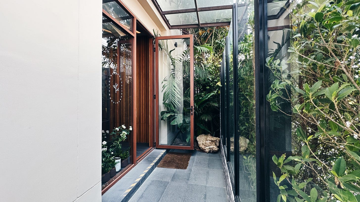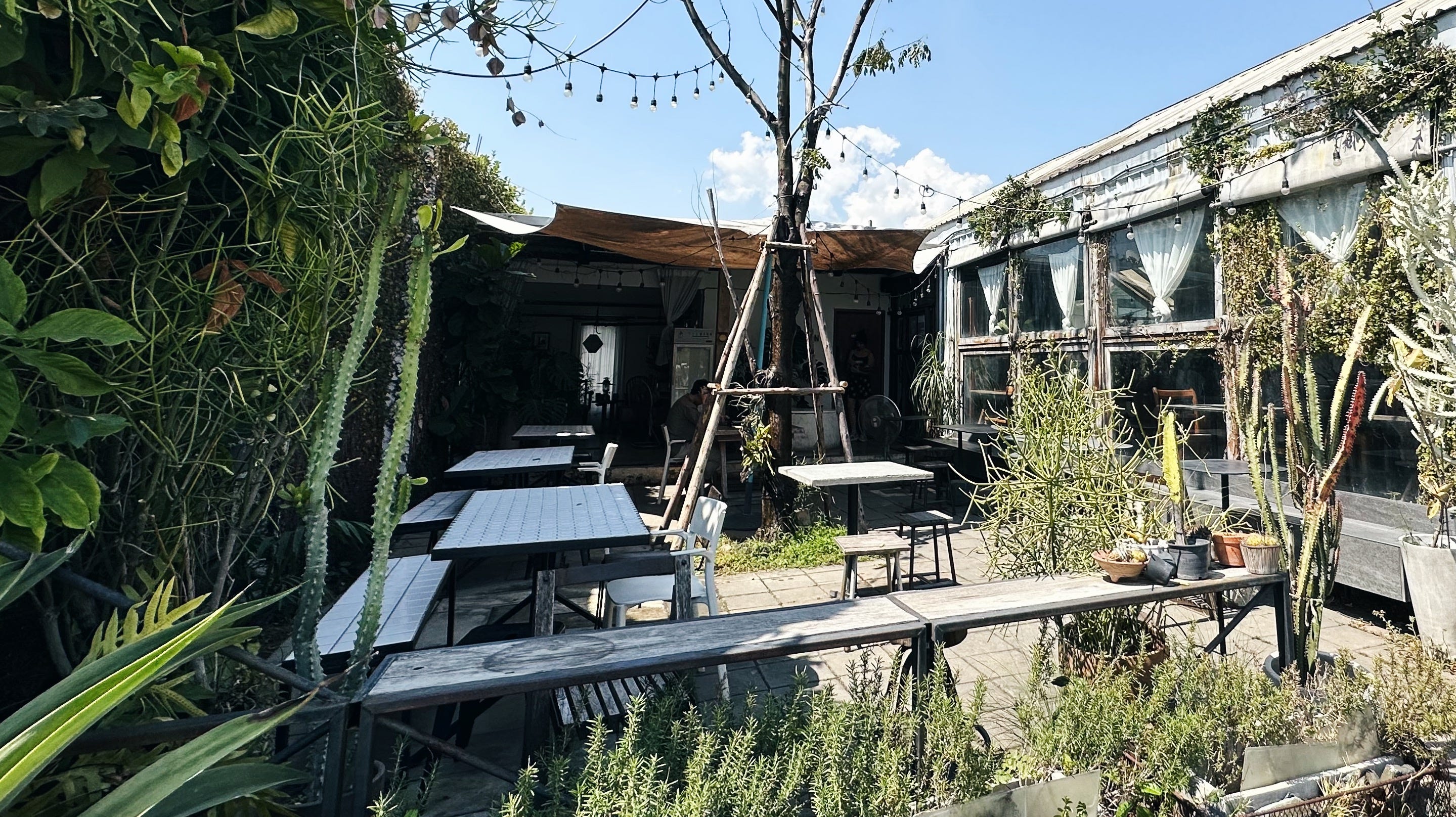 落地窗與大面積綠色植物牆,一直都是咖啡廳裝潢的不敗組合,不需太多人造照明就能有充足的自然光。除了開著空調的舒適室內,如果不害怕清邁的陽光,戶外座位的感受當然更愜意,四周都是植物就是賞心悅目。