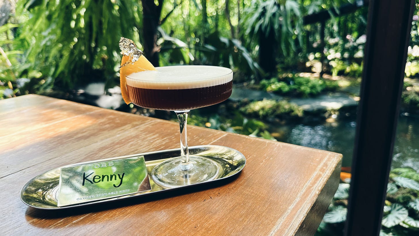 正餐、咖啡、甜點都相當精緻,價位在清邁略高,但完全對得起它的品質。室內外空間舒適,還有庭園流水造景呢。點杯 130 泰銖的冷萃特調,不只有帶金箔的杯緣裝飾,更有寫個人名字的名牌⋯⋯果然偶爾還是要來點ㄏㄧㄏㄨㄚ的東西,感受真好啊。