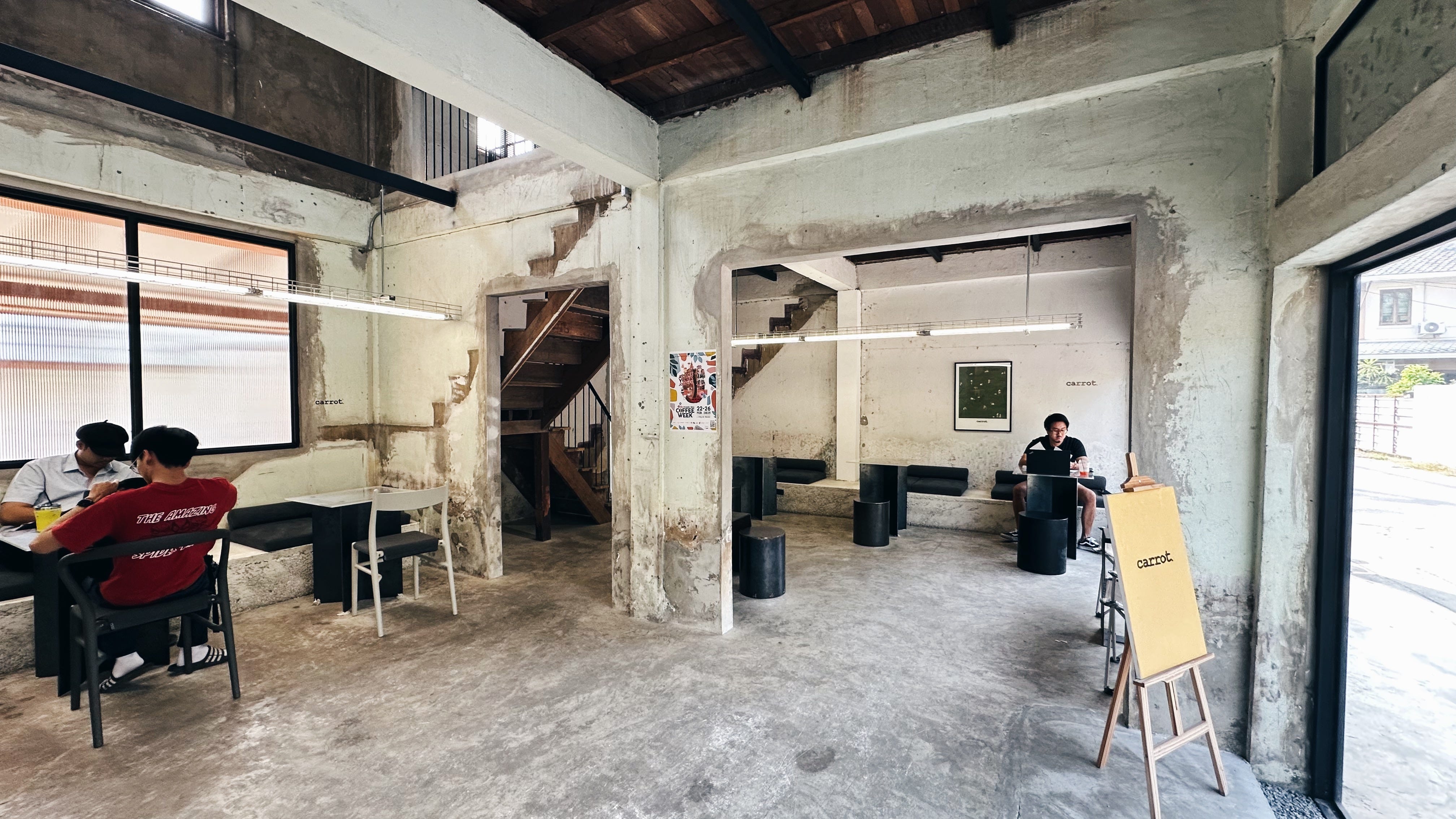 第一眼就被裝潢風格吸引,裸露水泥風格設計穿插著可愛溫暖的小角落與巧思。特調 Carrot No.1 是奶油拿鐵與胡蘿蔔脆餅的組合,使風味和口感都有更多變化;胡蘿蔔蛋糕裝飾很美!本來擔心上層奶油會膩口,但蛋糕體很好地中和了這部分,推薦。